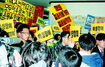 A group of South Korean Christians shaved their heads Wednesday in protest against the country's private school law, which they claim contains unconstitutional clauses.