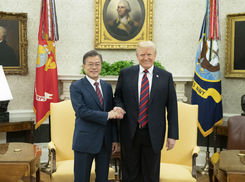During a press conference with South Korean President Moon Jae-in prior to their tête-à-tête at the White House on May...