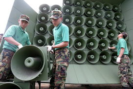 The Defense Ministry announced on Apr. 23 that it would shut off loudspeakers which were blaring K-pop music and propaganda broadcasts into North...