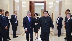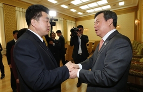Following a meeting at the Mansudae Assembly Hall in Pyongyang on Apr. 2, South Korean Sports Minister Do Jong-hwan and his North Korean...