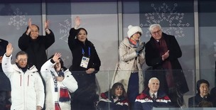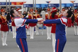 The North Korean cheerleading squad gave a 30-minute public performance at the Pyeongchang Olympic Plaza in Gangwon Province on the afternoon of...
