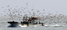 A fishing boating comes back to port on Yeonpyeong Island shrouded in seagulls, Apr. 15. The area around Yeonpyeong is still a flashpoint in...