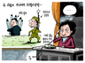 This cartoon shows the unpredictable Kim Jong-un being stared down by former president Lee Myung-bak, who took a hard-line policy toward North...