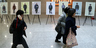 Passersby look at photos of landmine victims in the lobby of the National Assembly, Apr. 10. The photos are being exhibited as an effort to urge...