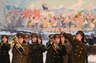 A military brass band plays as North Koreans celebrate in front of Pyongyang’s Arch of Triumph after the successful launch of the Eunha-3 rocket...