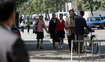 A North Korean woman sells roasted chestnuts on the Okryu Bridge in Pyongyang at a recent date. The sale is illegal because selling goods at a...