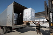 A North Korean worker supervises the unloading of H1N1 influenza antiviral medication at Kaesong on Dec. 18.